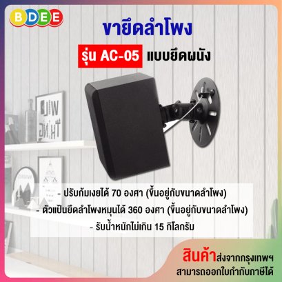 ขายึดลำโพงติดผนัง (SPEAKER WALL MOUNT) BDEE รุ่น AC-05 เป็นขายึดลำโพงที่ผลิตและออกแบบมาใหม่ เพื่อรองรับการใช้งานลำโพงขนาดกลางได้หลากหลายรูปแบบ วัสดุทำจากเหล็กพ่นสีอบความร้อนอย่างดี รูปทรงสวยงาม งานปราณีต เรียบร้อย