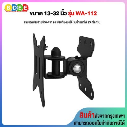 ขาแขวนจอมอนิเตอร์ BDEE รุ่น WA-101 เป็นขาแขวนจอมอนิเตอร์ติดผนัง แบบปรับก้ม-เงย ส่ายซ้าย-ขวา และหมุนหน้าจอได้ เหมาะกับจอมอนิเตอร์ขนาดตั้งแต่ 14-32 นิ้ว รับน้ำหนักได้ไม่เกิน 15 กิโลกรัม รองรับจอมอนิเตอร์ได้ทุกรุ่นทุกยี่ห้อ ที่มีรูด้านหลังแนวตั้ง และแนวนอน 7.5x7.5 ซ.ม. หรือ 10x10 ซ.ม. เหล็กเพลทยึดผนังหนา 2 มิลลิเมตร เหล็กเพลทยึดทีวีหนา 1.8 มิลลิเมตร น้ำหนักสินค้า 1.08 กิโลกรัม