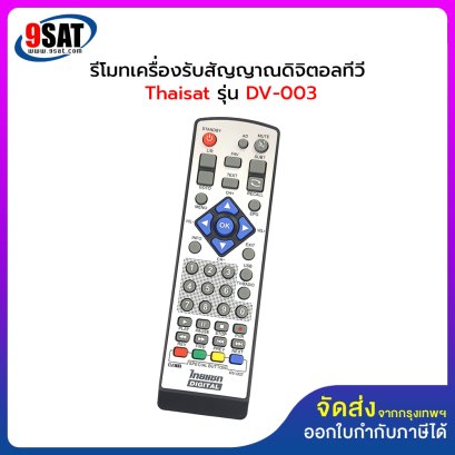 รีโมทคอนโทรลเครื่องรับสัญญาณไทยแซท รีโมทรุ่นนี้สามารถใช้ได้กับรีซีฟเวอร์ดิจิตอลทีวี THAISAT รุ่น DV-003 และรีซีฟเวอร์ดิจิตอลทีวี เฉพาะบางรุ่นเท่านั้น และยังสามารถใช้ได้กับ รีซีฟเวอร์ดิจิตอลทีวี NANO รุ่น DT-T2A, COMPRO รุ่น TR-T2A (***ใช้ได้เฉพาะบางปุ่มกด เช่น On/Off, เพิ่มช่อง/ลดช่อง, เพิ่มเสียง/ลดเสียง, โหมดเมนู)