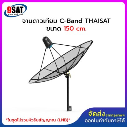 จานดาวเทียม C-Band THAISAT ขนาด 150 ซ.ม. ออกแบบคอจานเป็นแบบปั้มขึ้นรูป โครงจานเคิร์พดีไซน์การออกแบบรูปทรงตามหลัก parabola ทำให้เกณฑ์การรับสูง หน้าจานเป็นแบบโปร่ง 4 ชิ้น ไม่ต้านลม โครงจานแบบประกบทำจากอลูมิเนียมทั้ง 4 ใบ โครงสร้างหน้าจานผลิตจากอลูมิเนียม หมดปัญหาเรื่องสนิม