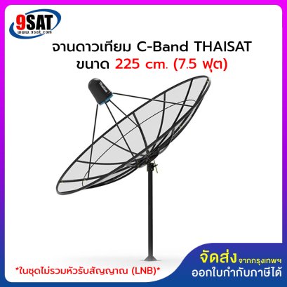 จานดาวเทียม C-Band THAISAT ขนาด 7.5 ฟุต หรือ 225 ซ.ม. ออกแบบคอจานเป็นแบบวงแหวน โครงจานใหญ่ แข็งแรงกว่า เหมาะสำหรับงานระบบและงานบ้านทั่วไปที่ต้องการความแรงของสัญญาณเป็นพิเศษ เคิร์พจานดีไซน์ออกแบบรูปทรงตามหลัก parabola โดยหน้าจานดีไซน์ใหม่เพิ่มเกณฑ์รับสัญญาณสูงกว่าจานทั่วไปในขนาดเดียวกัน หน้าจานเป็นแบบโปร่ง 4 ชิ้นประกอบ ไม่ต้านลม
