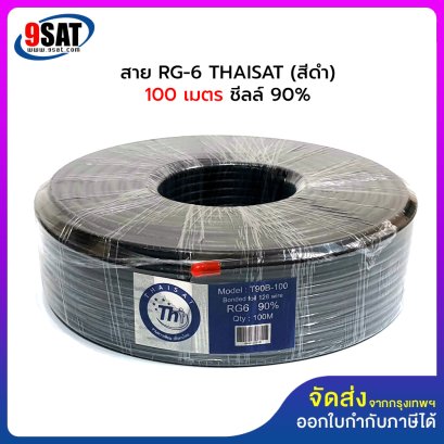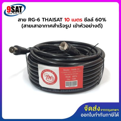 สายนำสัญญาณ RG-6 THAISAT สีดำ ความยาว 10 เมตร แกนกลางเคลือบทองแดง ชีลล์ 60% เข้าหัว F บีบ และหัวสายอากาศ 75 โอห์ม อย่างดี