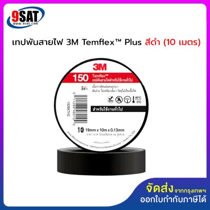 เทปพันสายไฟ 3M Temflex™ Plus สีดำ (10 เมตร) ป้องกันสายไฟของคุณจากการขีดข่วน, การเจาะ, เปลวไฟ, ความชื้น, สารเคมี และกรดด่างต่าง ๆ ด้วยเทปพันสายไฟ จากแบรนด์ 3M เทปกาวคุณภาพดี มีความยืดหยุ่นสูง ติดแน่น ไม่เหนียวเยิ้ม และทนทานต่อความร้อนสูงถึง 80 องศาเซสเซียส และให้การยึดเกาะได้ดีในทุกพื้นผิว