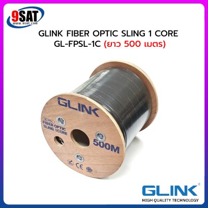 สายไฟเบอร์ออฟติก 1 Core SM ยี่ห้อ GLINK ความยาว 500 เมตร ใช้งานได้ทั้งภายในและภายนอกอาคารมีลวดสลิงแบบฟั่นเกลียว (stranded) ตลอดแนวสายรองรับแรงดึงที่ระมาณ 45 กิโลกรัม วัสดุเปลือกหุ้ม LSZH เป็นวัสดุที่ไม่ลามไฟและทนต่อสภาวะภายนอกได้อย่างดีเยี่ยม ภายใต้เปลือกหุ้มดังกล่าวจะมี ไฟเบอร์กลาสผสมเรซิ่นอันแข็งแกร่ง (FRP) ขนาบข้างตลอดตามความยาวสาย