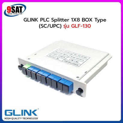 GLINK PLC Splitter 1X8 (SC/UPC) BOX Type รุ่น GLF-130 รองรับสัญญาณแสงเข้า 1 ออก 8 สำหรับแยกสัญญาณแสงให้กับอุปกรณ์จำพวก GPON, GEPON, ONU, CATV ที่เป็นระบบไฟเบอร์ออฟติกเป็นต้น การใช้งานอุปกรณ์ชนิดนี้ต้องขึ้นอยู่กับอุปกรณ์ต้นทาง และปลายทางด้วย