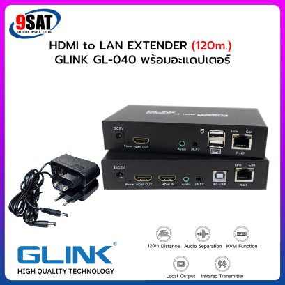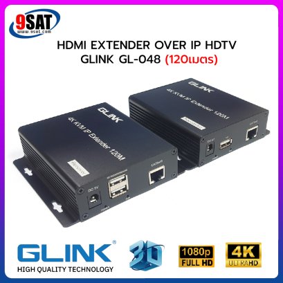 GLINK HDMI EXTENDER OVER IP HDTV (120 เมตร) รุ่น GL-048 อุปกรณ์แปลงสัญญาณภาพ HDMI ผ่านสายแลนระยะไกล (ทางร้านแนะนำเป็นสายแลน Cat6 ที่ไม่ใช่สายแลนแบบสำเร็จรูป) ที่ระยะไม่เกิน 120 เมตร สามารถใช้งานร่วมกับคีย์บอร์ด และเม้าส์ได้ โดยสามารถใช้งานควบคู่ผ่านระบบเน็ตเวิร์ค (HUB) ได้ ช่วยแก้ปัญหาเรื่องข้อจำกัดของการเดินสาย HDMI ยาวๆแล้วสัญญาณไม่ผ่าน และทำให้การเดินสายทำได้ง่ายกว่าการเดินสาย HDMI (ทองแดง) ซึ่งมีขนาดของสายที่ค่อนข้างใหญ่ และไม่สามารถส่งสัญญาณในระยะไกลได้