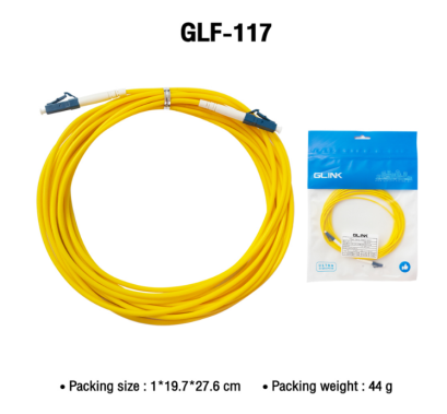 GLINK สาย FIBER OPTIC PATCH CORD (LC/UPC-LC/UPC) SM/SX/OS2 รุ่น GLF-117 (5m.) เป็นสาย Patch Cord Single Mode (9/125) PVC Jacket หัว SC/UPC ขนาดสาย 3 มิลลิเมตร ยาว 5 เมตร G657A1 FIBER Core วัสดุเปลือกหุ้ม PVC สายประเภทนี้จะเหมาะกับการนำมาเป็นสายต่อเข้าอุปกรณ์ต่างๆ