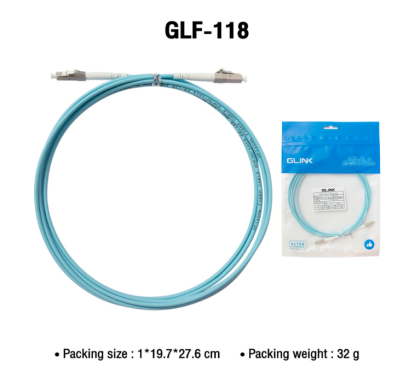 GLINK สาย FIBER OPTIC PATCH CORD (LC/UPC-LC/UPC) SX/MM/OM3 รุ่น GLF-118 (3m.) เป็นสาย Patch Cord Multi Mode (50/125) PVC Jacket หัว LC/UPC ขนาดสาย 3 มิลลิเมตร ยาว 3 เมตร วัสดุเปลือกหุ้ม PVC สายประเภทนี้จะเหมาะกับการนำมาเป็นสายต่อเข้าอุปกรณ์ต่างๆ