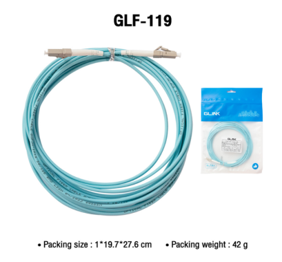 GLINK สาย FIBER OPTIC PATCH CORD (LC/UPC-LC/UPC) SX/MM/OM3 รุ่น GLF-119 (5m.) เป็นสาย Patch Cord Multi Mode (50/125) PVC Jacket หัว LC/UPC ขนาดสาย 3 มิลลิเมตร ยาว 5 เมตร วัสดุเปลือกหุ้ม PVC สายประเภทนี้จะเหมาะกับการนำมาเป็นสายต่อเข้าอุปกรณ์ต่างๆ