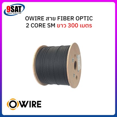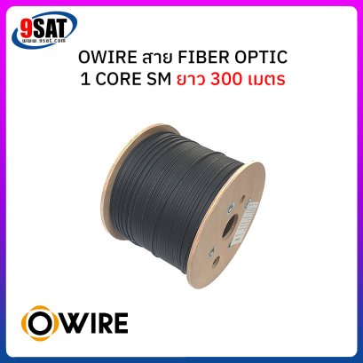สายไฟเบอร์ออฟติก 1 Core SM ยี่ห้อ OWIRE ความยาว 300 เมตร ใช้งานได้ทั้งภายในและภายนอกอาคารมีลวดสลิงแบบฟั่นเกลียว (stranded) ตลอดแนวสายรองรับแรงดึงที่ระมาณ 45 กิโลกรัม วัสดุเปลือกหุ้ม LSZH เป็นวัสดุที่ไม่ลามไฟและทนต่อสภาวะภายนอกได้อย่างดีเยี่ยม ภายใต้เปลือกหุ้มดังกล่าวจะมี ไฟเบอร์กลาสผสมเรซิ่นอันแข็งแกร่ง (FRP) ขนาบข้างตลอดตามความยาวสาย