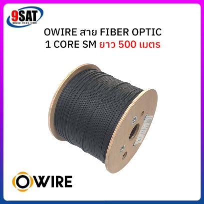 สายไฟเบอร์ออฟติก 1 Core SM ยี่ห้อ OWIRE ความยาว 500 เมตร ใช้งานได้ทั้งภายในและภายนอกอาคารมีลวดสลิงแบบฟั่นเกลียว (stranded) ตลอดแนวสายรองรับแรงดึงที่ระมาณ 45 กิโลกรัม วัสดุเปลือกหุ้ม LSZH เป็นวัสดุที่ไม่ลามไฟและทนต่อสภาวะภายนอกได้อย่างดีเยี่ยม ภายใต้เปลือกหุ้มดังกล่าวจะมี ไฟเบอร์กลาสผสมเรซิ่นอันแข็งแกร่ง (FRP) ขนาบข้างตลอดตามความยาวสาย