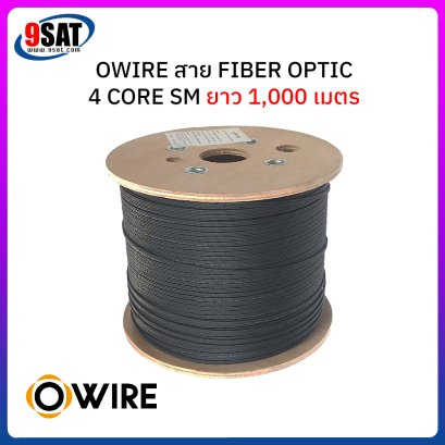 สายไฟเบอร์ออฟติก 4 Core Single-mode (9/125um) FRP, LSZH ยี่ห้อ Owire ยาว 1,000 เมตร เป็นสาย Fiber Optic สำหรับใช้งานได้ทั้งภายใน และภายนอกอาคาร มีลวดสลิงตลอดแนวสายรองรับแรงดึงที่ระมาณ 45 กิโลกรัม วัสดุเปลือกหุ้ม LSZH เป็นวัสดุที่ไม่ลามไฟและทนต่อสภาวะภายนอกได้อย่างดีเยี่ยม ภายใต้เปลือกหุ้มดังกล่าวจะมี ไฟเบอร์กลาสผสมเรซิ่นอันแข็งแกร่ง (FRP) ขนาบข้างตลอดตามความยาวสาย