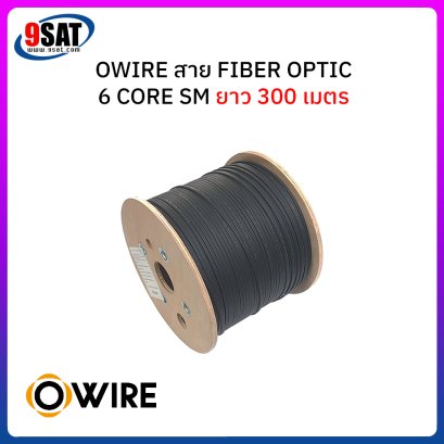 สายไฟเบอร์ออฟติก 6 Core Single-mode (9/125um) FRP, LSZH ยี่ห้อ Owire ยาว 300 เมตร เป็นสาย Fiber Optic สำหรับใช้งานได้ทั้งภายใน และภายนอกอาคาร มีลวดสลิงตลอดแนวสายรองรับแรงดึงที่ระมาณ 45 กิโลกรัม วัสดุเปลือกหุ้ม LSZH เป็นวัสดุที่ไม่ลามไฟและทนต่อสภาวะภายนอกได้อย่างดีเยี่ยม ภายใต้เปลือกหุ้มดังกล่าวจะมี ไฟเบอร์กลาสผสมเรซิ่นอันแข็งแกร่ง (FRP) ขนาบข้างตลอดตามความยาวสาย
