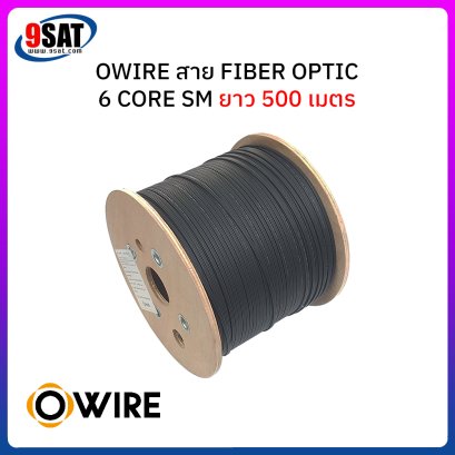 สายไฟเบอร์ออฟติก 6 Core Single-mode (9/125um) FRP, LSZH ยี่ห้อ Owire ยาว 500 เมตร เป็นสาย Fiber Optic สำหรับใช้งานได้ทั้งภายใน และภายนอกอาคาร มีลวดสลิงตลอดแนวสายรองรับแรงดึงที่ระมาณ 45 กิโลกรัม วัสดุเปลือกหุ้ม LSZH เป็นวัสดุที่ไม่ลามไฟและทนต่อสภาวะภายนอกได้อย่างดีเยี่ยม ภายใต้เปลือกหุ้มดังกล่าวจะมี ไฟเบอร์กลาสผสมเรซิ่นอันแข็งแกร่ง (FRP) ขนาบข้างตลอดตามความยาวสาย