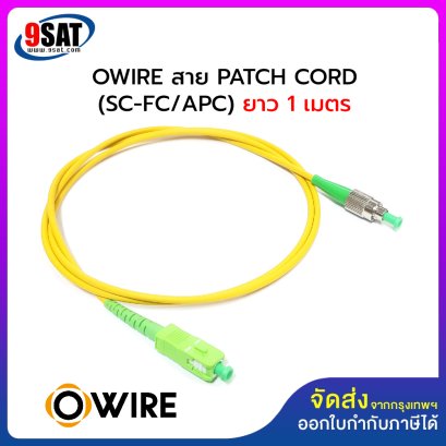สาย Patch Cord SC-FC (APC) Single-mode Simplex ยาว 1 เมตร ยี่ห้อ OWIRE เข้าหัวสำเร็จรูปชนิด SC/APC-FC/APC วัสดุเปลือกหุ้ม LSZH, คอร์ไฟเบอร์ G657A1