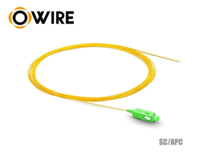 สาย Pigtail 1 Core SC/APC Single-mode 0.9 mm ยาว 1.5 เมตร ยี่ห้อ Owire ชนิดคอร์ไฟเบอร์แบบ G657A1 รองรับการโค้งงอได้ดีโดยไม่สูญเสียสัญญาณมาก สำหรับงานต่อสายแบบสไปรท์ด้วยเครื่องสไปรท์สายไฟเบอร์ออฟติก (FUSION SPLICER)