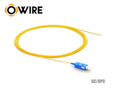 สาย Pigtail 1 Core SC/UPC Single-mode 0.9 mm ยาว 1.5 เมตร ยี่ห้อ Owire ชนิดคอร์ไฟเบอร์แบบ G657A1 รองรับการโค้งงอได้ดีโดยไม่สูญเสียสัญญาณมาก สำหรับงานต่อสายแบบสไปรท์ด้วยเครื่องสไปรท์สายไฟเบอร์ออฟติก (FUSION SPLICER)