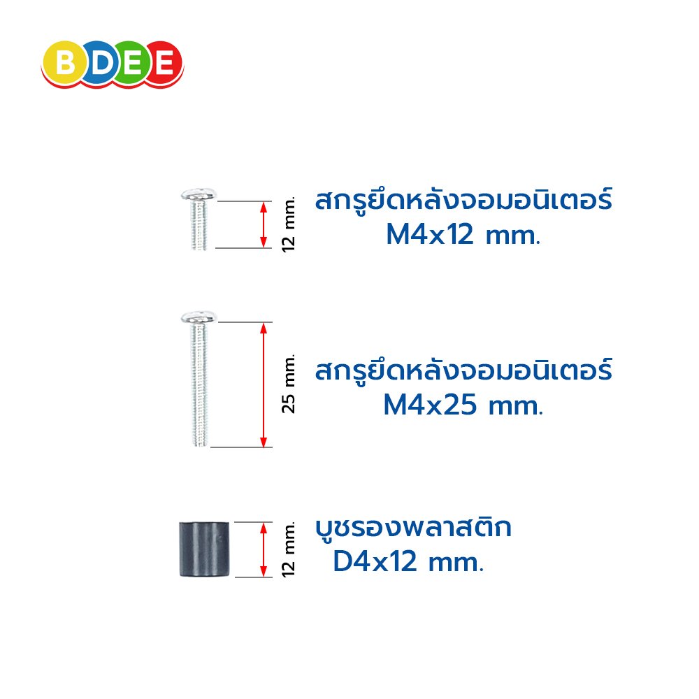- สกรูยึดหลังจอมอนิเตอร์ ขนาด M4x12 มม. จำนวน 4 ตัว