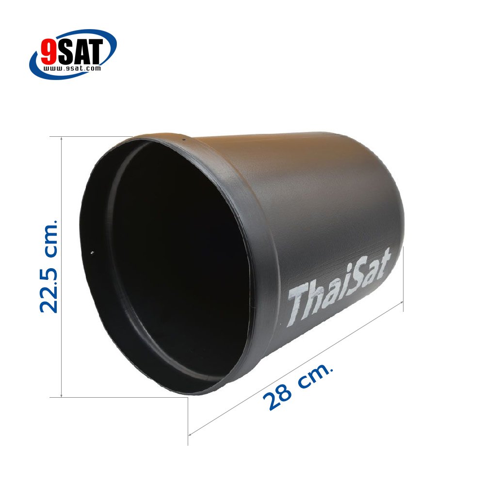 หมวกครอบหัวรับจานตะแกรงดำ (ใหญ่) Thaisat เป็นหมวกครอบหัวรับสัญญาณ LNB สามารถใช้ได้กับหัว LNB ทุกรุ่น ทุกยี่ห้อ ที่มีขนาดความสูงไม่เกิน 28 ซ.ม. โดยพื้นที่ภายในหมวกสามารถขดสาย หรือใส่ DiSEqC Switch ไว้ภายในหมวกได้ โดยหน้าที่หลักของหมวกครอบหัวรับ คือเพื่อกันแดด กันฝน และเพื่อยืดอายุการใช้งานของหัวรับสัญญาณ LNB
