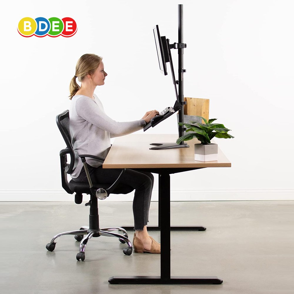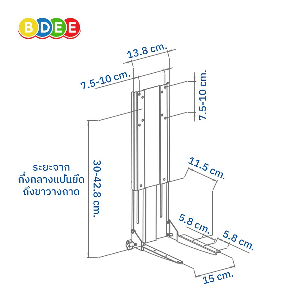 อะไหล่ (85) ขายึดถาดวางคีย์บอร์ดกับจอ เป็นอุปกรณ์ที่สำหรับใช้ยึดเข้ากับถาดวางคีย์บอร์ด BDEE รุ่น KTB-01 และ KTB-02 โดยที่อีกด้านสามารถยึดเข้ากับจอมอนิเตอร์ขนาด 24-34 นิ้ว รูหลังจอ 7.5x7.5, 10x10 ซ.ม. ได้ทุกรุ่น ทุกยี่ห้อ ตัวขายึดถาดวางสามารถปรับระดับขึ้น-ลง ความสูงได้ ปรับก้มถาดวางได้ 3 ระดับ ระดับละ 10 องศา และหมุนถาดวางซ้าย-ขวาได้ตามหน้าจอฯ วัสดุเป็นเหล็กพ่นสีอบความร้อนอย่างดี (Powder Coating) รูปทรงสวยงาม งานปราณีต เรียบร้อย