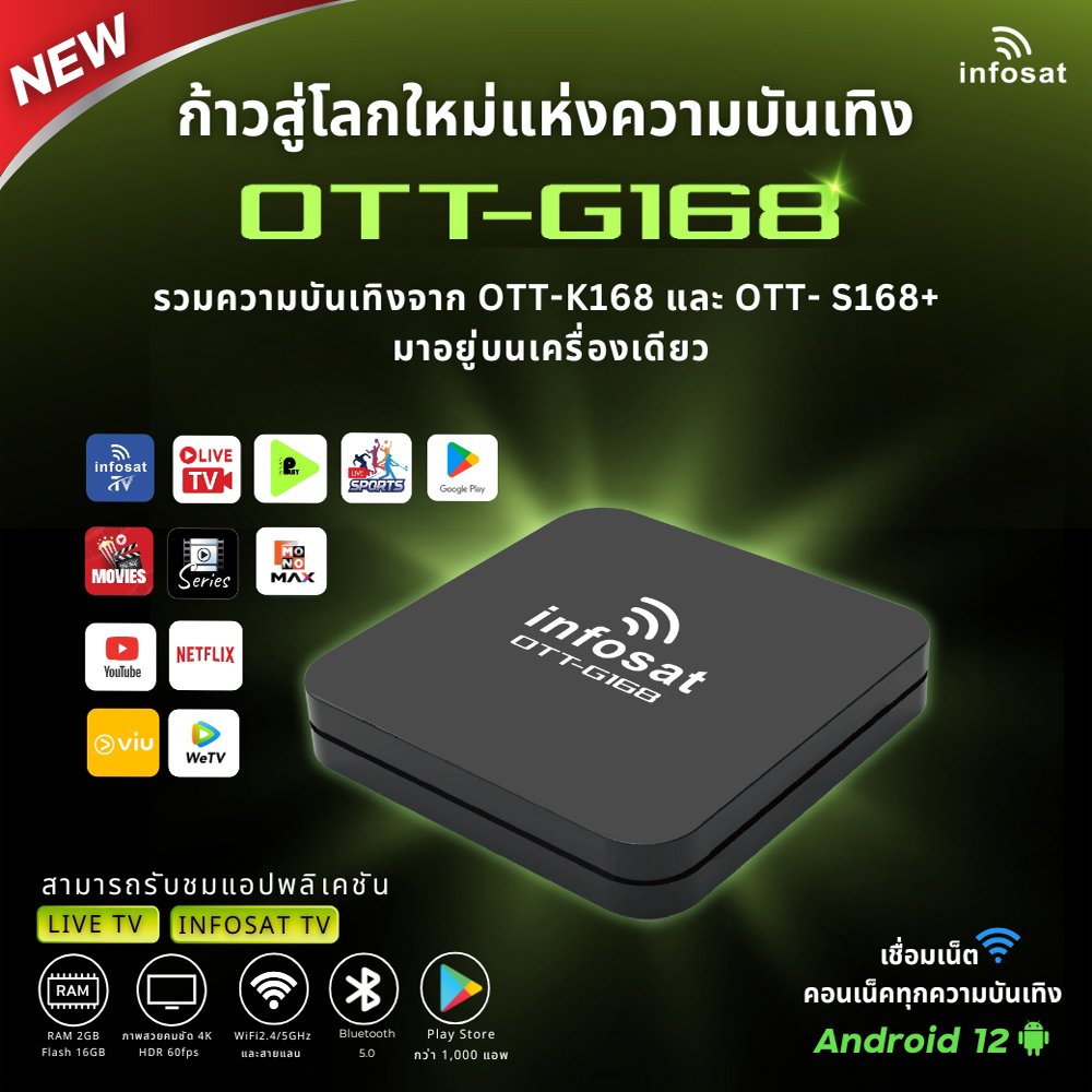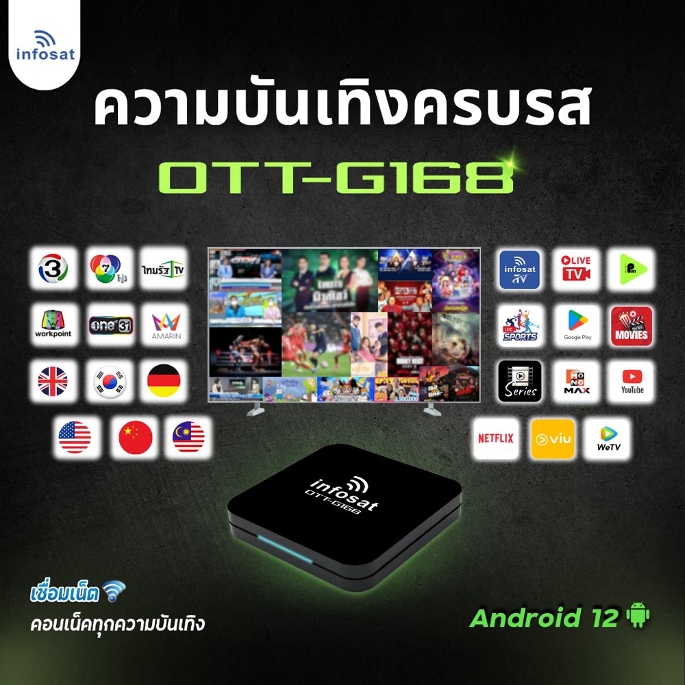 1. กล่องรับสัญญาณแอนดรอยทีวี INFOSAT Android12 รุ่น OTT-G168