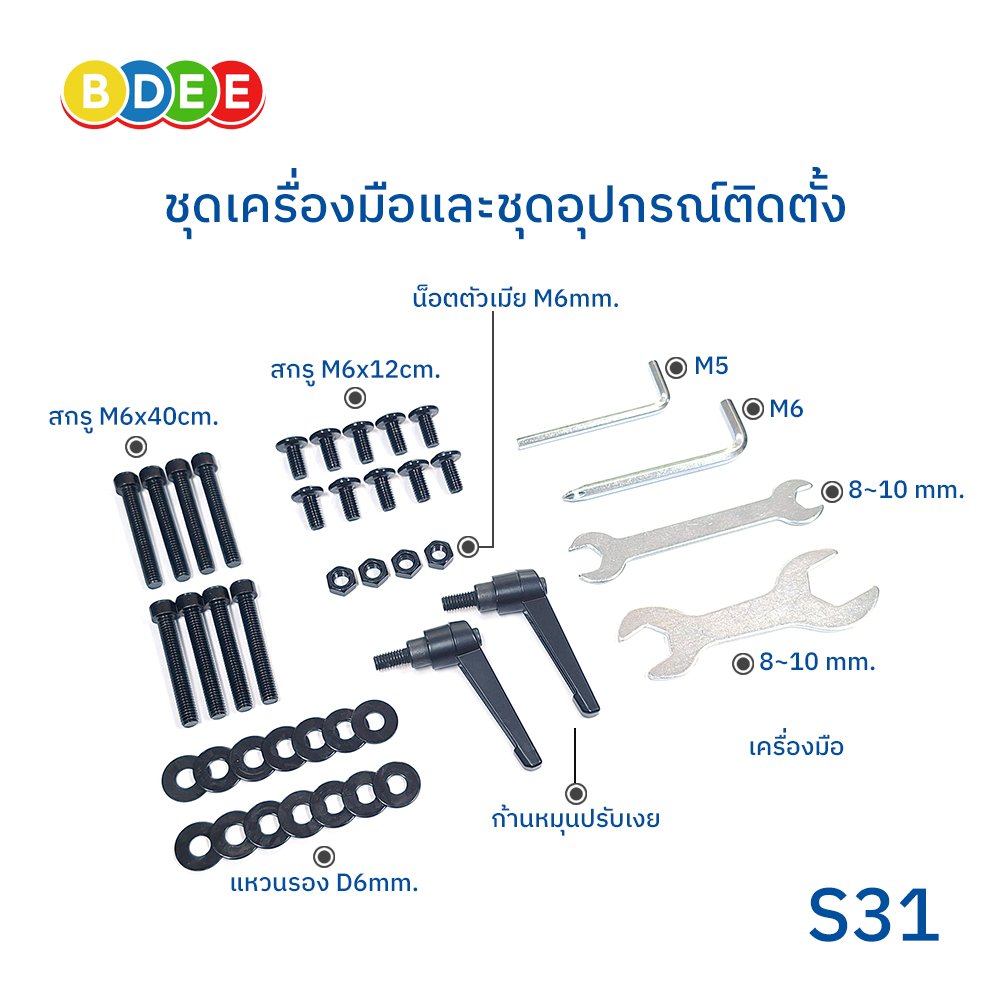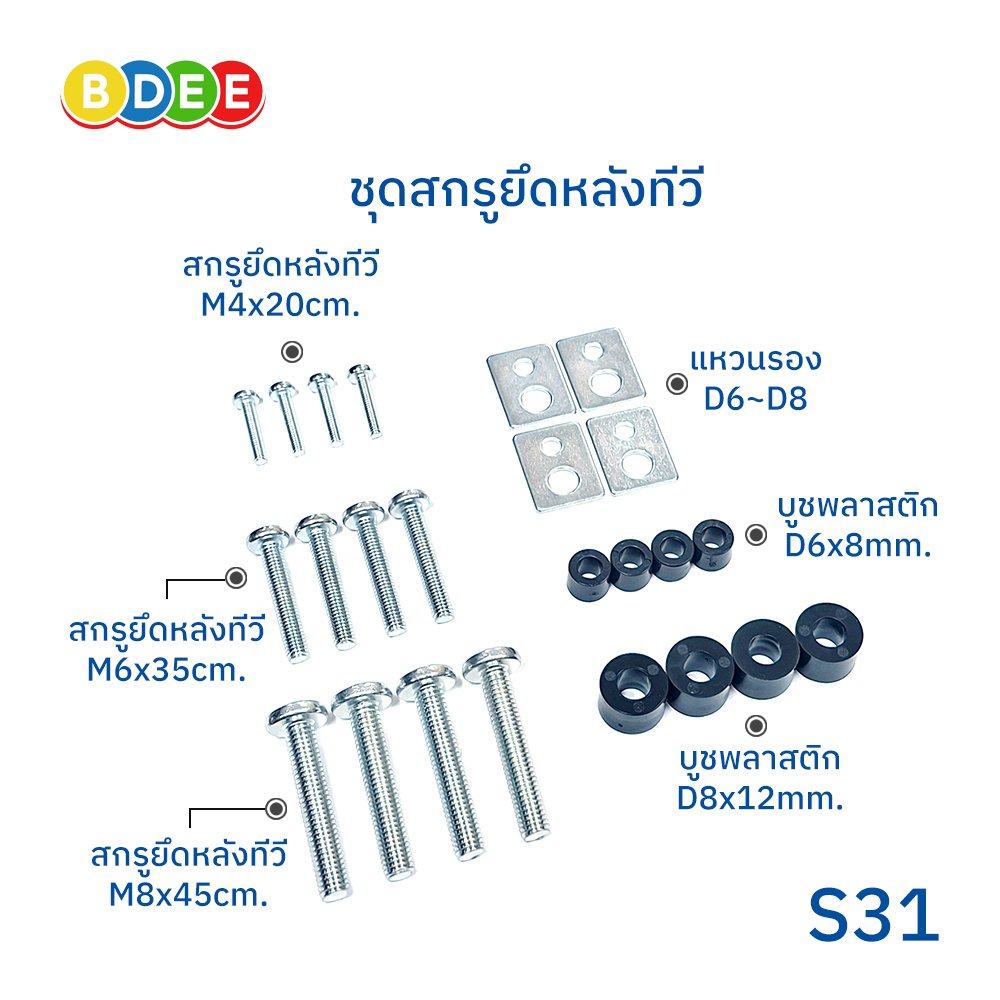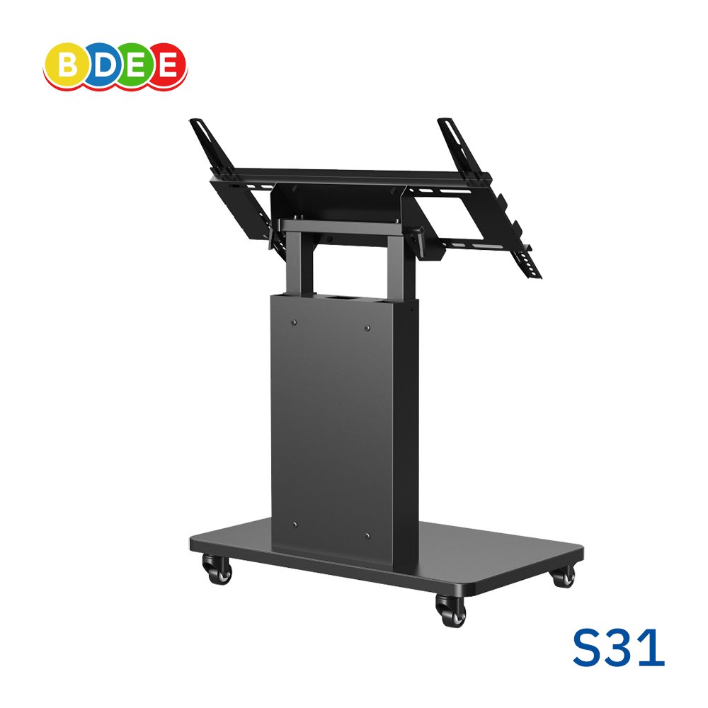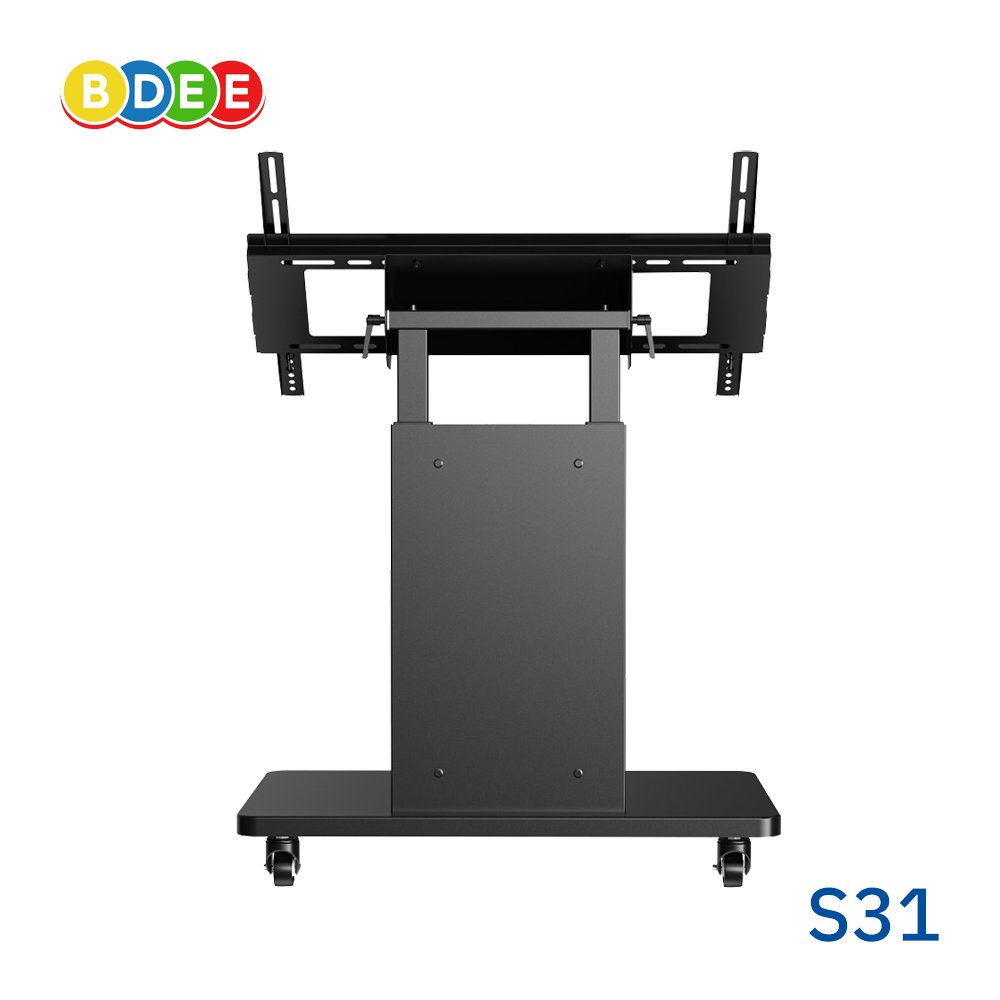ขาตั้งทีวี BDEE รุ่น S31 เป็นขาตั้งทีวีแบบเตี้ย ปรับเงยหน้าจอได้ 45 องศา, ปรับสูงต่ำได้ ตั้งแต่ 65-100 ซ.ม. เหมาะกับทีวีตั้งแต่ 42-75 นิ้ว ตัวฐานเป็นขาเหล็ก มั่นคง แข็งแรง มีกล่องสำหรับซ่อนปลั๊กไฟและสายไฟ เหมาะสำหรับวางในห้องประชุม ทำให้เวลานั่งดูจอทีวี ภาพจากทีวีจะอยู่ในระดับสายตา ขาตั้งตัวนี้จะช่วยแก้ปัญหานี้ได้ โดยสามารถปรับเงยหน้าจอให้องศาอยู่ในระดับพอดีกับสายตา สินค้ารุ่นนี้เหมาะสำหรับห้องประชุมในโรงเรียน หรือบริษัทฯ ห้างร้าน หรือสำนักงานต่างๆ รวมถึงบ้านพักอาศัยทั่วไป ตัวชิ้นงานผลิตจากเหล็กอย่างดี งานปราณีต เรียบร้อย รูปทรงสวยงาม