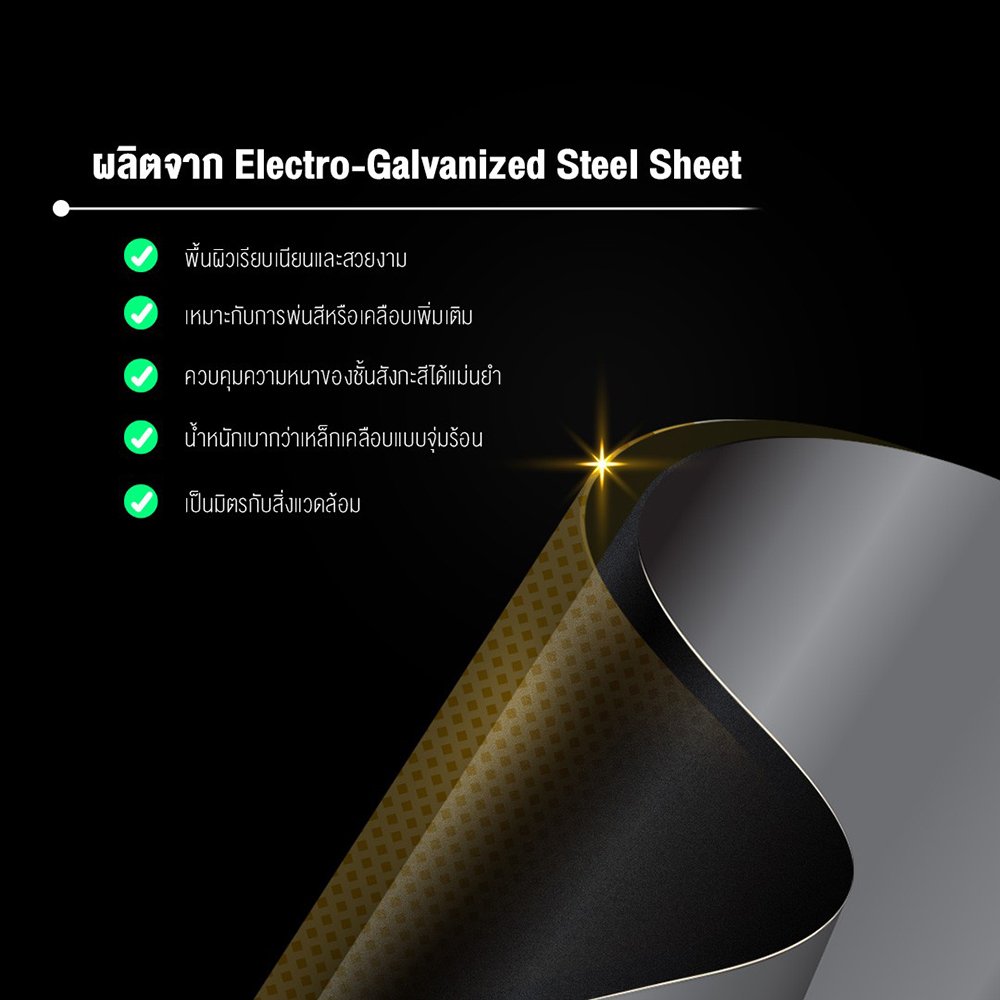 - วัสดุผลิตจากเหล็ก Electro Galvanized Sheet Steel หนา 0.7 มม.