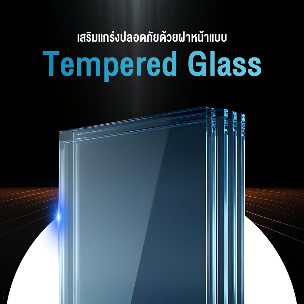 - บานประตูทำจากกระจกนิรภัย (Tempered Glass) พร้อมระบบกุญแจล็อค (Key-lock)